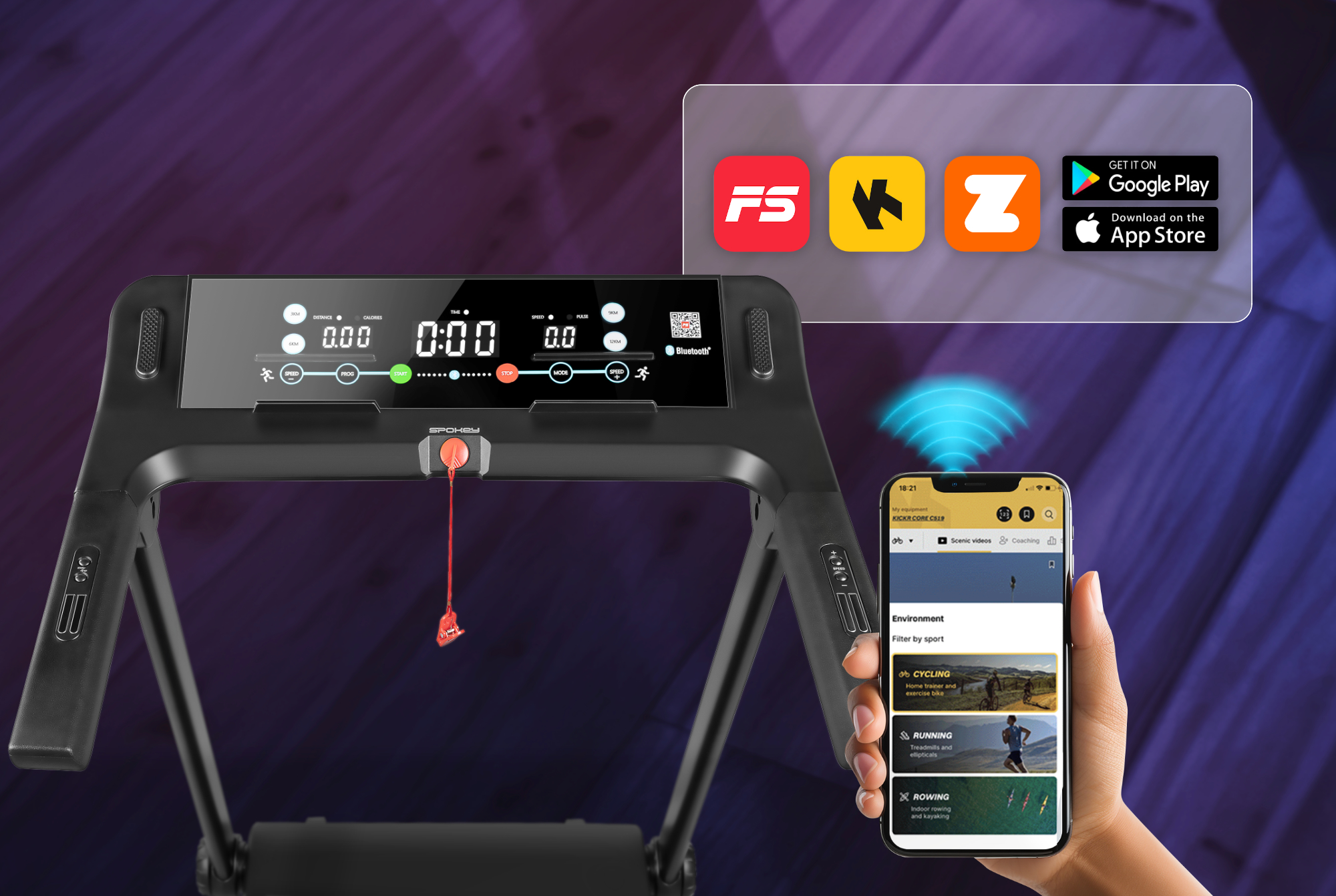 Běžecký pás Spokey LEAN podporuje Bluetooth připojení a je kompatibilní s aplikacemi Kinomap, Fitshow a Zwift, které přinášejí interaktivní a motivující tréninky z pohodlí domova. Běhejte po reálných trasách, sledujte své výkony a porovnávejte výsledky s ostatními sportovci.