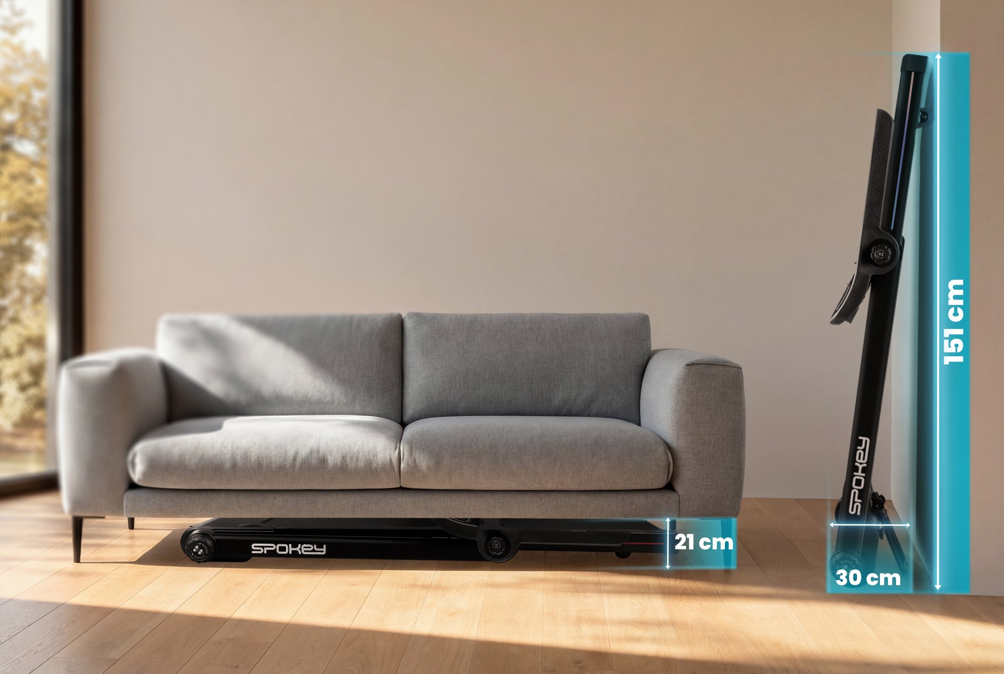 Model LEAN byl navržen tak, aby se bez problémů vešel do domácnosti - lze ho skladovat vertikálně (nastojato) i horizontálně (naležato). Díky kompaktní konstrukci se osvědčí i v menších prostorech. Běžecká plocha o rozměrech 125 x 45 cm zajišťuje komfort tréninku, a odolná konstrukce umožňuje použití osobami vážícími až 130 kg.