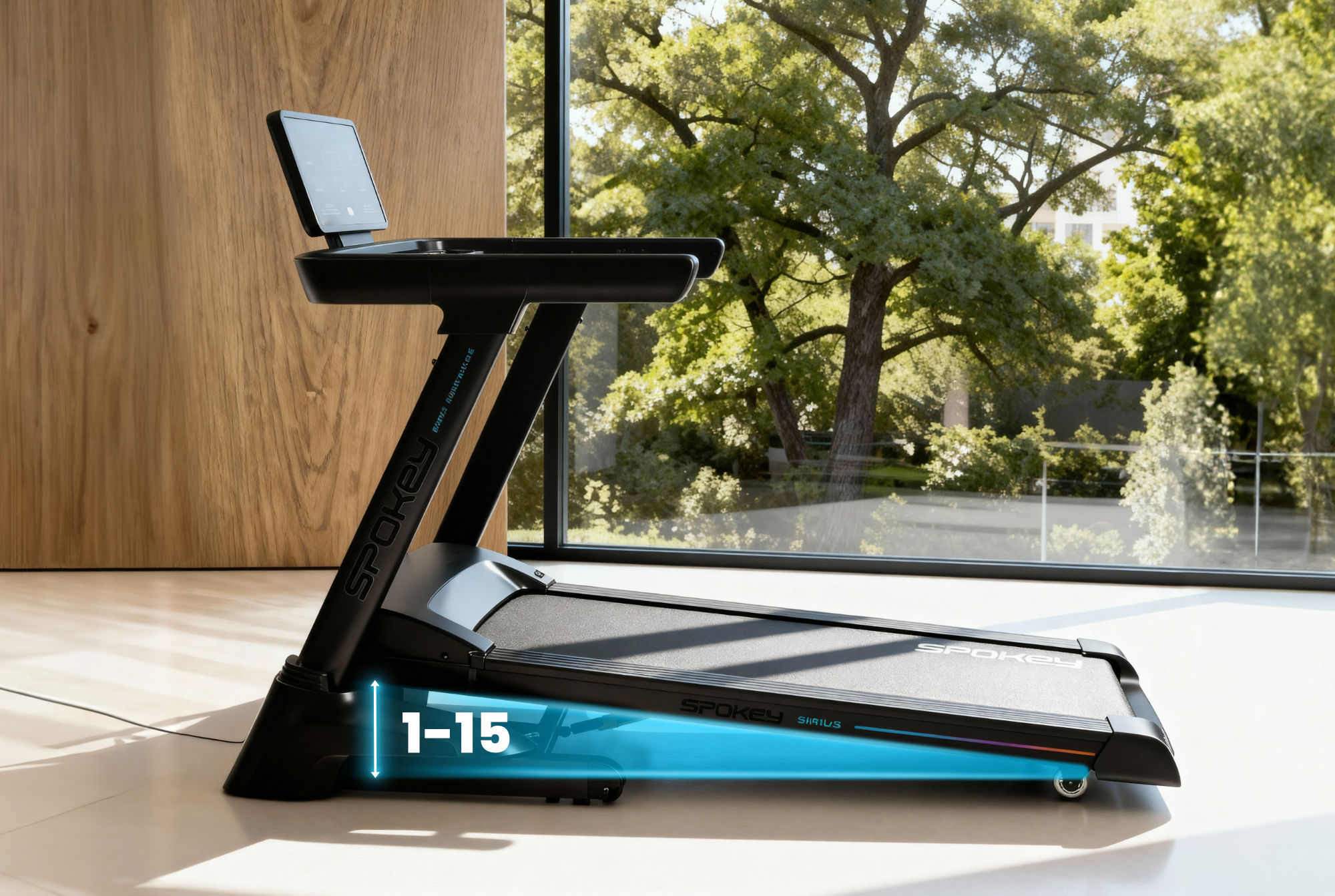 Běžecký pás Spokey SIRIUS přináší spojení síly, designu a inteligentních funkcí. Výkonný bezkartáčový motor 3,5 HP, automatické nastavení sklonu v 15 úrovních a rychlost až 18 km/h umožňují intenzivní trénink i v domácích podmínkách. Model SIRIUS je vybaven velkým LED displejem, intuitivním ovládacím kolečkem, moderním palcovým snímačem tepu, Bluetooth připojením, vestavěnými reproduktory a kompatibilitou s fitness aplikacemi.