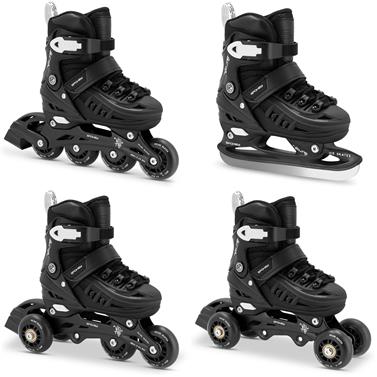 Objevte všestranné nastavitelné brusle pro děti i juniory, které spojují čtyři funkce v jediném páru - klasické inline brusle, stabilní trekové brusle, začátečnické triskates a lední brusle. Díky snadné výměně komponentů a nastavitelné velikosti rostou brusle spolu s dítětem a zajistí skvělou zábavu po celý rok - v tělocvičně, venku i na ledu. Bota disponuje trojitým systémem zapínání a tvrdou skořepinou, které zaručují dokonalé přizpůsobení, komfort a bezpečnost během jízdy.